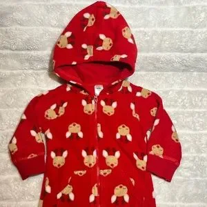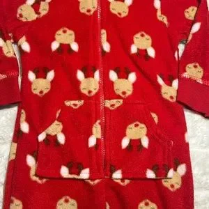 HB reindeer pajamas with a hoodie. Sz 6-9 mos. Red. Zip front