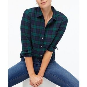 J. Crew Women' Boy Fit Navy Blue & Green Plaid Long Sleeve Button Down Shirt XS