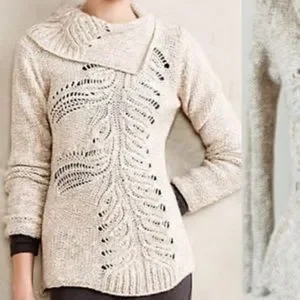 Anthropologie Moth Fern Chunky Knit Sweater Asymmetrical Oatmeal Tan Medium