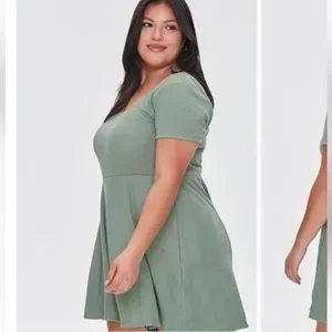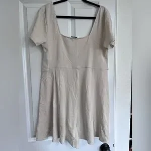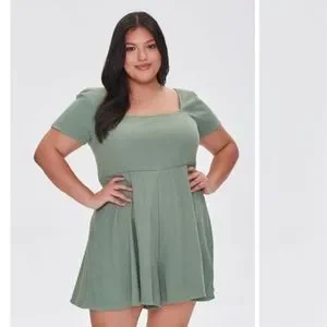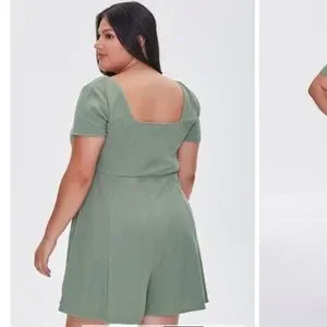 A knit romper featuring short sleeves, a square neckline and back, and a relaxed silhouette.