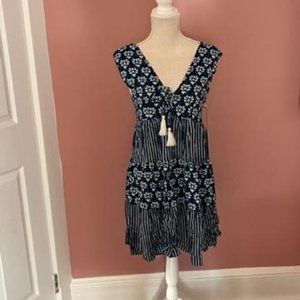 Goa Beachware by Japana Sundress/Beach Cover Up. NWT Versatile dress in pretty blue and white flower & stripe pattern can be used as a sundress or beach cover-up. Lightweight, with front tie closure. Shell is 100% viscose and lining is 100% polyester. Machine wash.