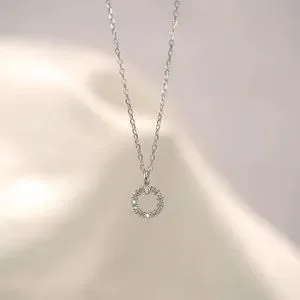 NEW Silver Shiny Zircon Double Circle Pendant Necklace