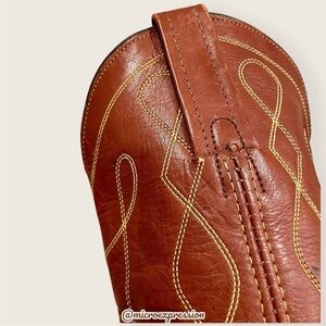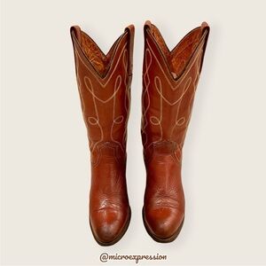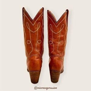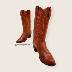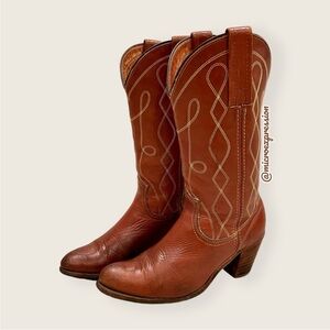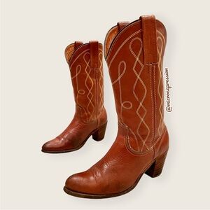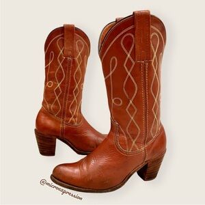 1980's VINTAGE Frye Swirl Stitch Embroidered Cognac Brown Leather Cowboy Boot