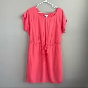 NWOT, never worn! Old navy Peach Drawstring Dress. Size Large. Elastic banded waist. Cuffed sleeves. Shell: 100% rayon. Lining: 100% polyester. Pit to pit ~20.5". Length from shoulder seam to bottom hem ~36.5".