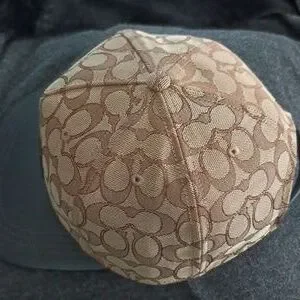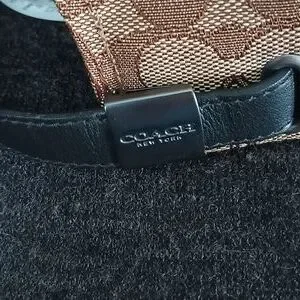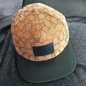 Coach Baseball Cap Hat Canvas Tan Brown & Black Leather