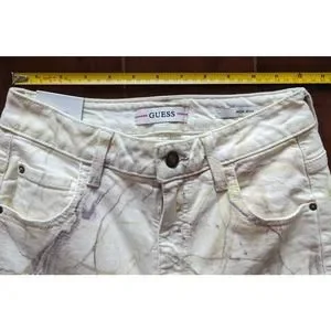 Not your mom's denim: GUESS redefines the classic silhouette of these high-rise jeans with a chic print and streamlined silhouette.