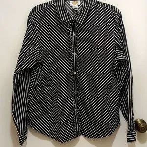 TALBOTS Long Sleeve Button up Shirt with Black and White Stripes Size L . Never worn.