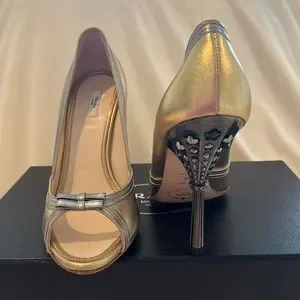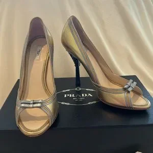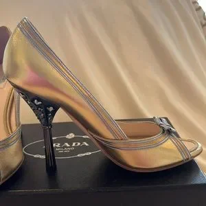 Brand new never worn Prada Heels. Will ship with 2 Prada dust bags and 2 extra pair of heels. Heel height is about 4.5” All stones intact!