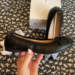 “Elise” slip on ballet flats from Nordstrom. Black vegan leather with stretchy top line. Black bow on toe. Rubber bottom. Girls size 3. Brand new with tag & box!!