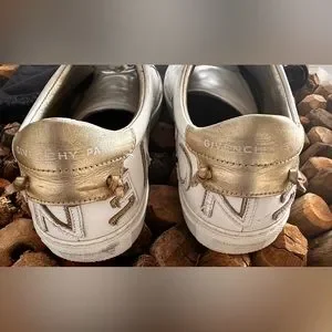 Givenchy Women White and Gold Leather Sneakers Size 40