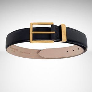 ALEXANDER MCQUEEN Men's The Gold Tone Buckle Belt in Black Calfskin Leather