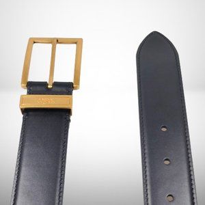 Black smooth calf leather belt featuring a gold-finished buckle.
