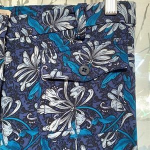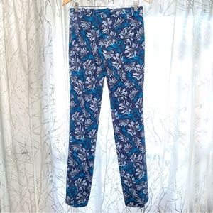 REBECCA TAYLOR blue floral print high rise waisted wide leg pants front pockets