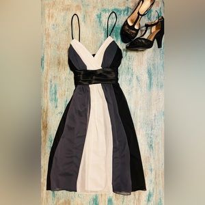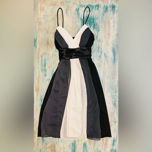 Y2K Vintage Cocktail Dress; Small; black/grey/white