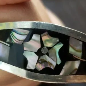 MEXICAN SILVER BRACELETS with INLAID FLOWER MOTIFS OF NATURAL MOTHER OF PEARL