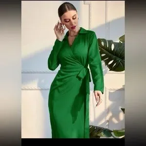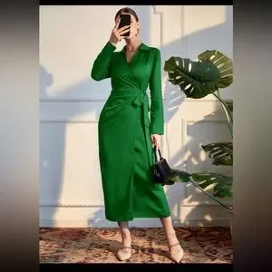 Solid Wrap Tie Side Dress