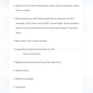 NOTE: Cover photo shows a very similar style to the item offered. It is to show the fitting and the silhouette. The only difference is that the shirt for sale has not chest pocket but instead it has red color pony logo.