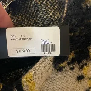 Long sleeve cardigan. Brand new with tags. Size small. Has a clasp at the top of cardigan.