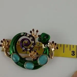 Gecko Lizard Brooch Pin Bow Tie Enamel Whimsical Fun Collectible