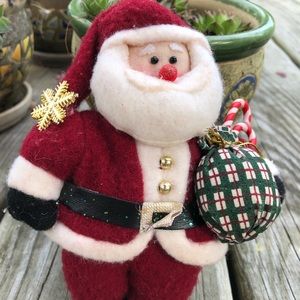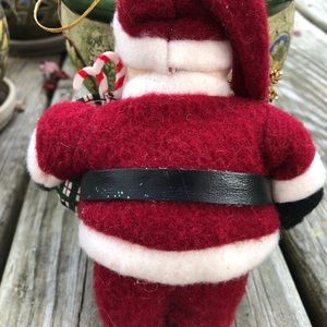 3 vintage SANTA CLAUS Christmas Ornaments / Plush 6" Carrying Candy Canes in Bag