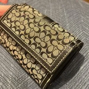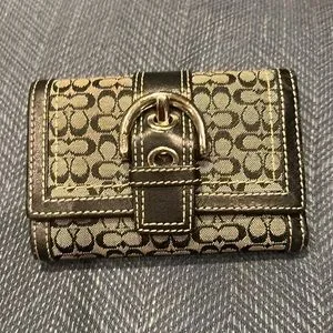 COACH Wallet Canvas Leather Signature Bifold Buckled Wallet. Authentic. Exc Cond