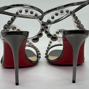 Christian Louboutin CORINETTA 100 Studded PVC Strap SandalS Heels Shoes