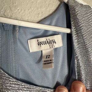 Girls blue & silver holiday dress, sleeveless, Ruffled hem, size 10, Speechless