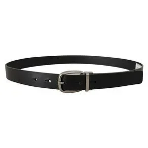 Dolce & Gabbana Black Classic Calf Leather Silver Metal Belt