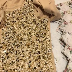Beautiful blush color beaded cardigan from Anthropology. Size Medium. Small patch of missing sequins/beads (photo attached). Has two hooks for subtle closure in front. One pleat in middle of back.