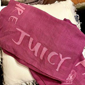 This is a fashionable and rare purple scarf by Juicy Couture made of a fine wool. It features the brand name in big letters along the sides as well as the trademark crown. It measures 38" x 38" and is in strong preloved condition with just a few small imperfections (see photos).
