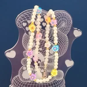 Kawaii Pearls & Colorful Flowers Beaded Necklace Y2K Handmade