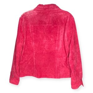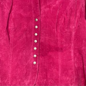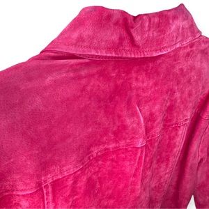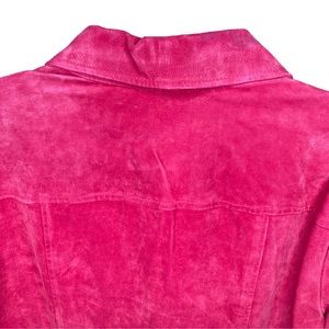 Live A Little XL Hot Pink Suede Leather Snap Button Up Fitted Jacket Pockets