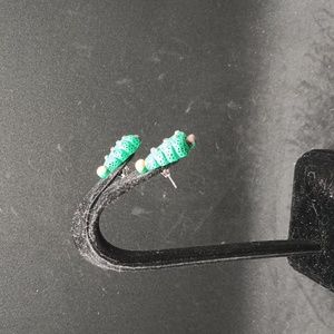 A pair of earrings in the shape of cute Christmas trees. Made by me. Never worn.