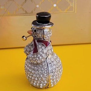 Estee Lauder Snowman Solid Perfume Compact made with sparkling Swarovski crystals. This is a vintage piece, never used and looks brand new on the outside. Filled with Estee Lauder classic solid perfume (note:perfume not used but shows age with some oxidization on the inside casing.
