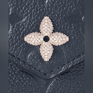 The Victorine wallet is revisited in Monogram Empreinte leather with a beautiful, subtle shimmer. An ideal gift, this tiny wallet unfolds to reveal a surprisingly spacious interior, with several pockets and six card slots. Its envelope-style flap is sealed with a rhinestone-encrusted press-stud in the shape of a Monogram Flower.