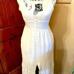 Cute strappy off white dress MIDI length Goes great with boots and a sweater or summer sandals Very good cond