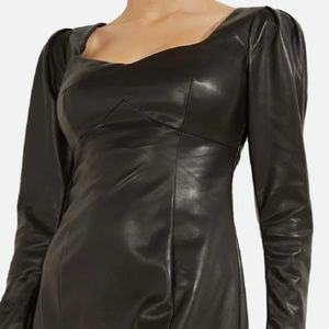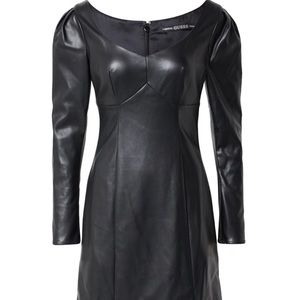 New with tags. Size Small. Guess brand mini dress. Body con fit. Very versatile and chic. Dress features a puff sleeve design and zipper back. Faux leather. Comfortable with a sweetheart neckline. Versatile for many occasions. Hand wash cold only.