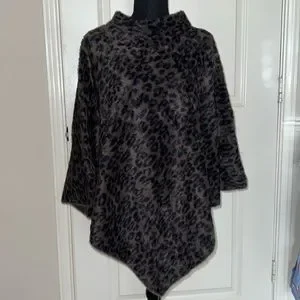 Chico’s feather knit jacquard animal print poncho