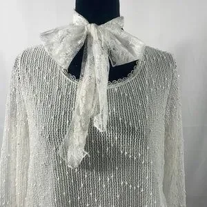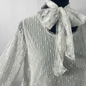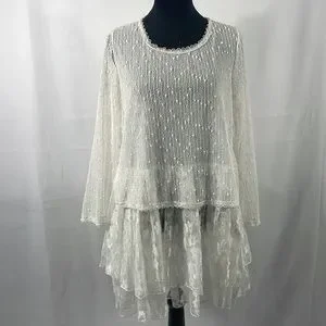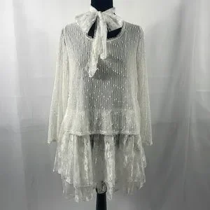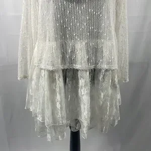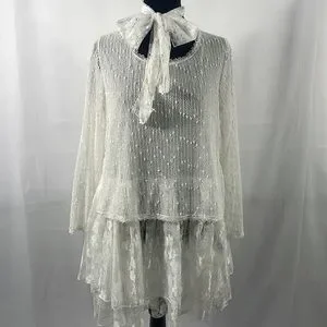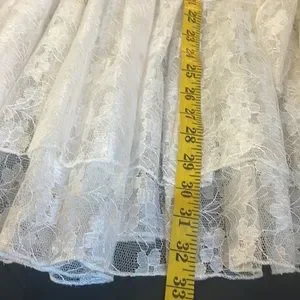 Simply Couture, Baby doll, layered Dress,Lace, with bow tie scarf, White, Medium, 33 inches in length, 20 inches laying flat armpit to armpit
