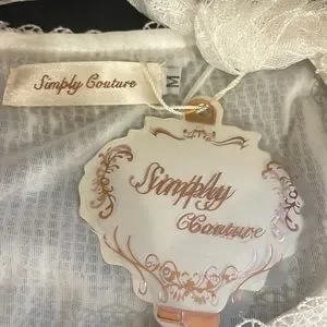 Simply Couture, Baby doll, layered Dress,Lace, with bow tie scarf, White, Medium