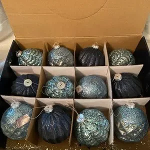 **NEW** Christmas Ornaments Shades of blue.12 ornaments/box.