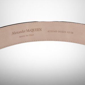 ALEXANDER MCQUEEN Men's The Silver Tone Buckle Belt in Black Calfskin Leather