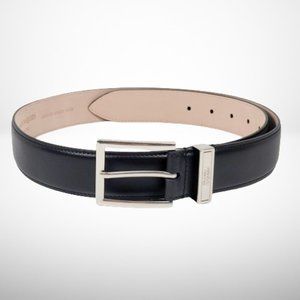 Black smooth calf leather belt featuring a silver-finished buckle.