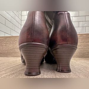 Heals, soles, and inside in like new condition only worn twice. I LOVE them but they are 1/2 size too small for me.