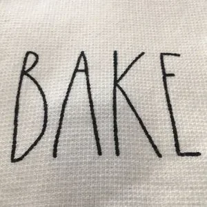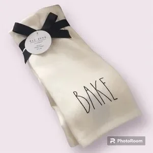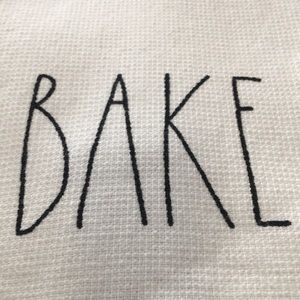 Rae Dunn set of two ivory colored kitchen towels NWT. BAKE printed in black on one of the towels, HOME MADE printed on other one. 100% cotton.