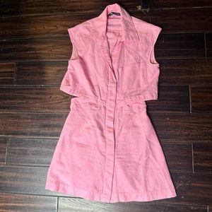 Button down dress with collar/ open back . It’s a crop top attached to a high waisted skirt . #Barbiecore #pink color .