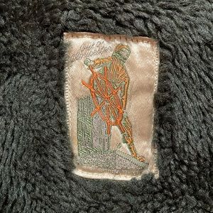 I thrifted this in the 80s and wore it for many years. Since the buttons eventually wore through, I replaced them and added reinforcement underneath to give it a third life for now! So there are patched pieces under the buttons for some distressed detailing.