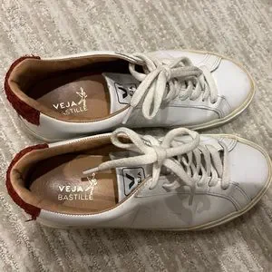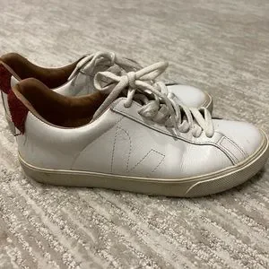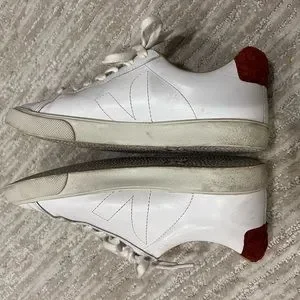 Veja Women’s Esplar Sneaker in White w Burgundy Snakeskin Size 37