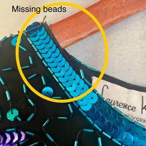 There is some beading missing around party of the neckline- please see pictures.