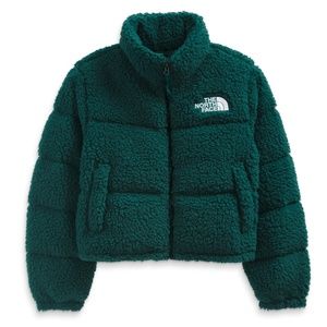 The north face CER, Sherpa, puffer jacket in cropped forest green colour